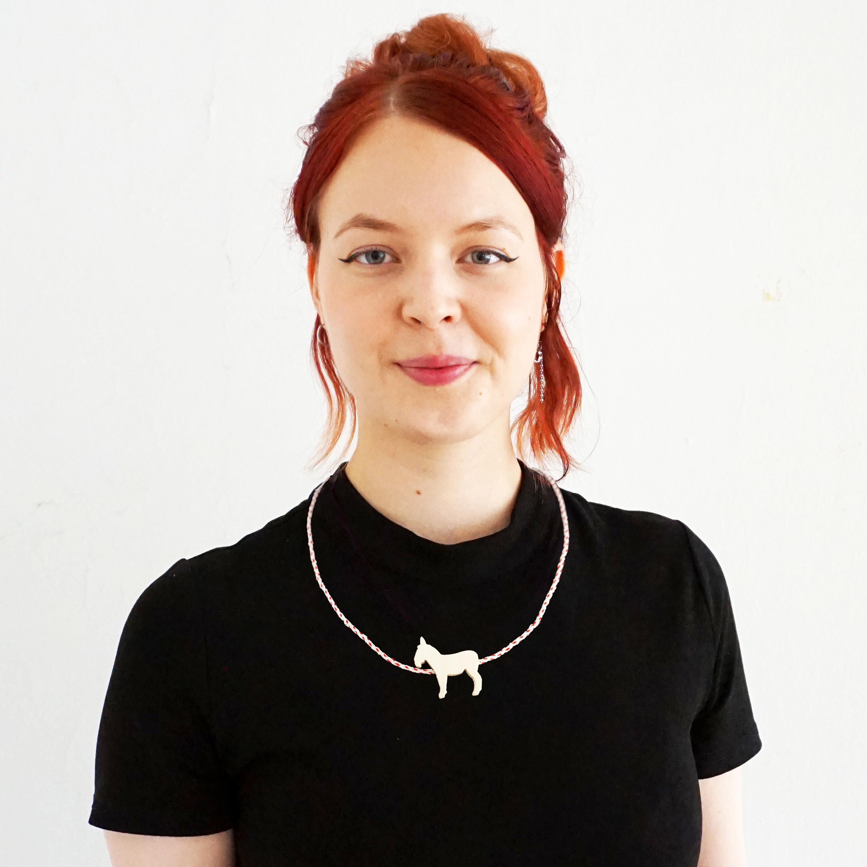 UNIKAT Halskette mit Holz-Pferd, Perlen-Kugel & handgeknüpftem Band / UNICAT Necklace with wood horse, beads ball & hand-knotted ribbon