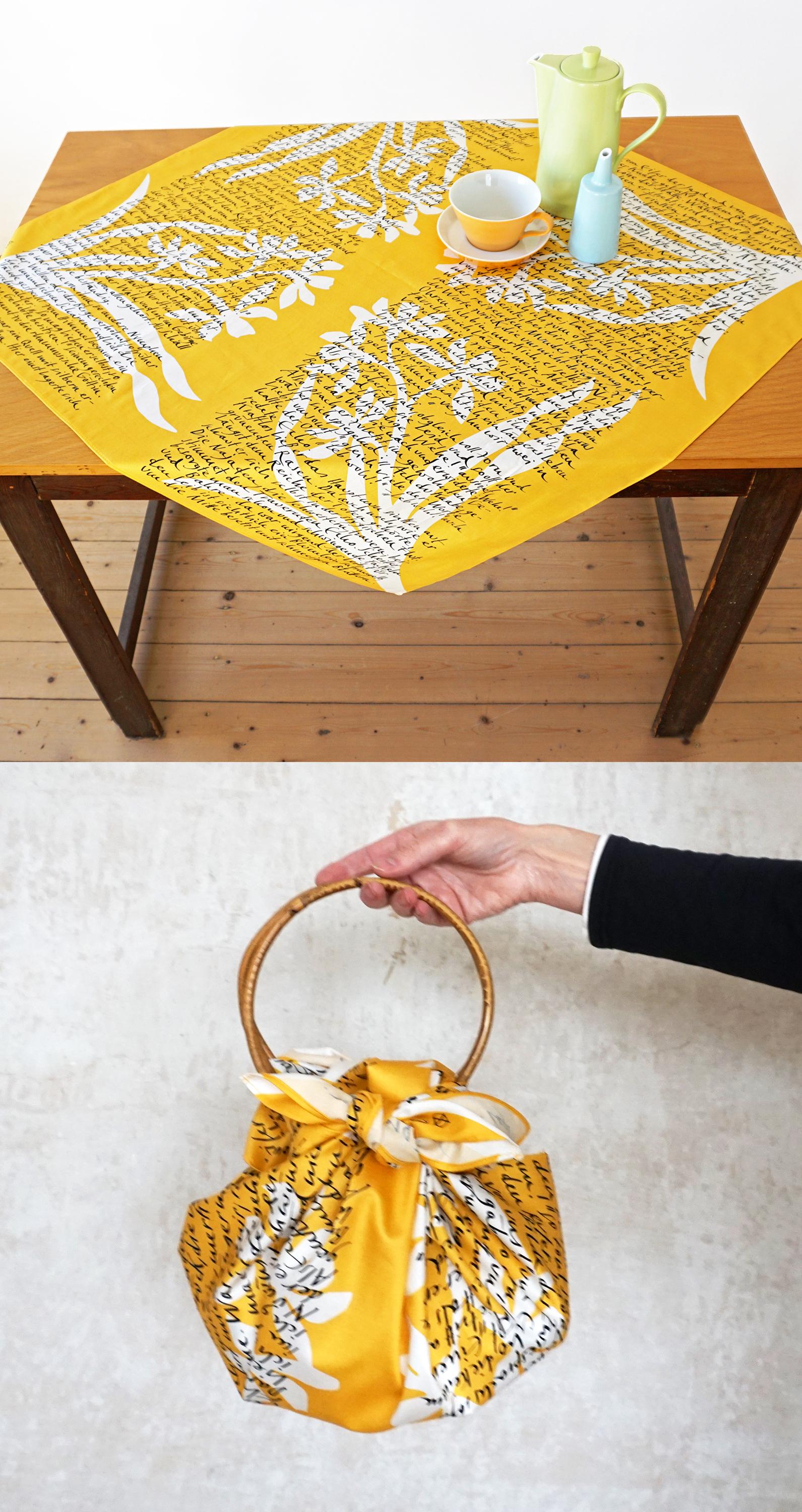 NARCISSUS AND ECHO Text from Ovid's "Metamorphoses". The cloth can be used in many ways – for example as a tablecloth, furoshiki bag or as sustainable gift wrapping.