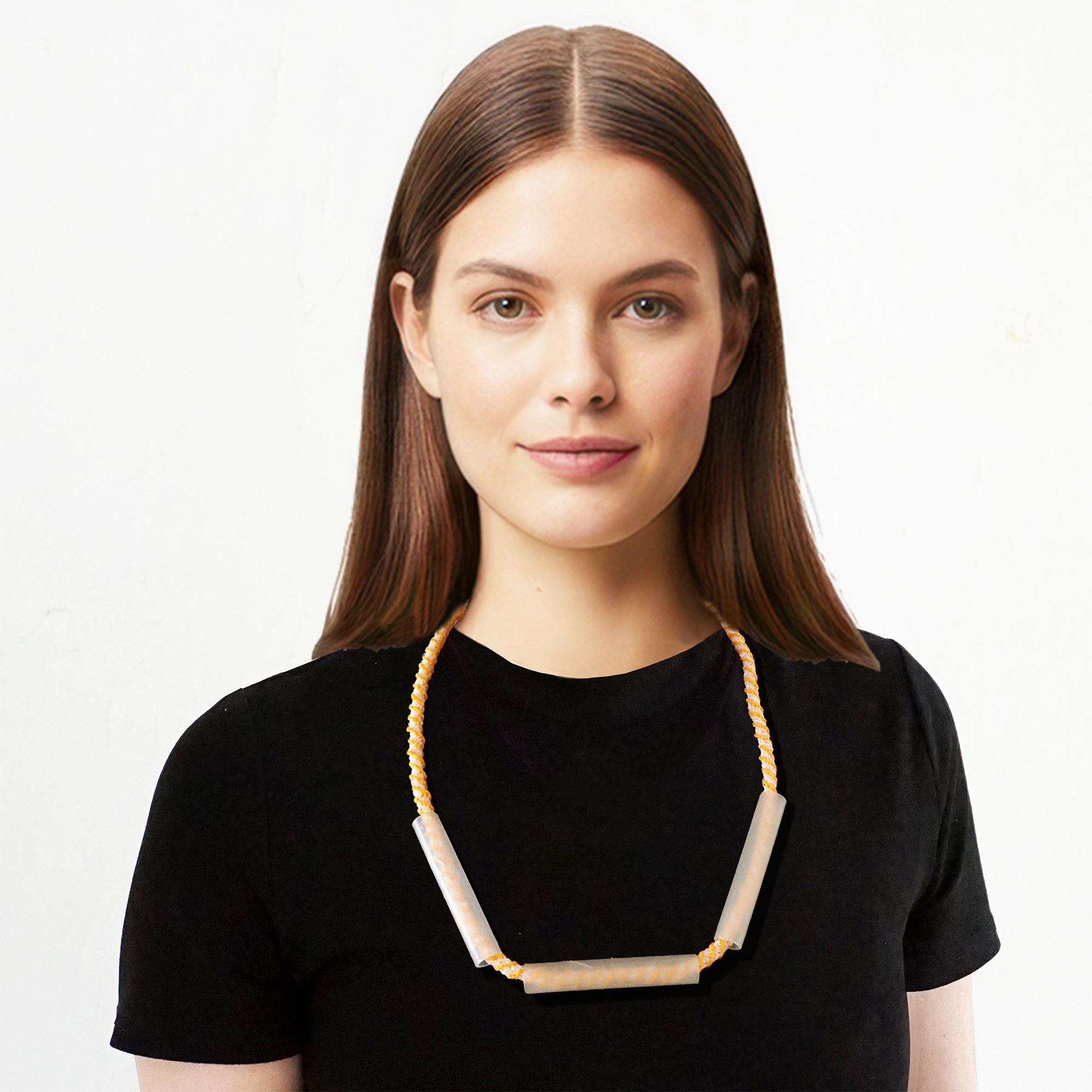 A special highlight: The yellow thread in the braided necklace comes from a former potato net.