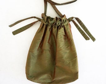 black silk organza handbag, embroidered with cords, lace, wedding, bridal bag